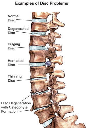 Spondylolisthesis occurs when a bone from the lower spine (a vertebra) slips out of position. This is not to be confused with a slipped disc, when one of the spinal discs inbetween the vertebrae ruptures.